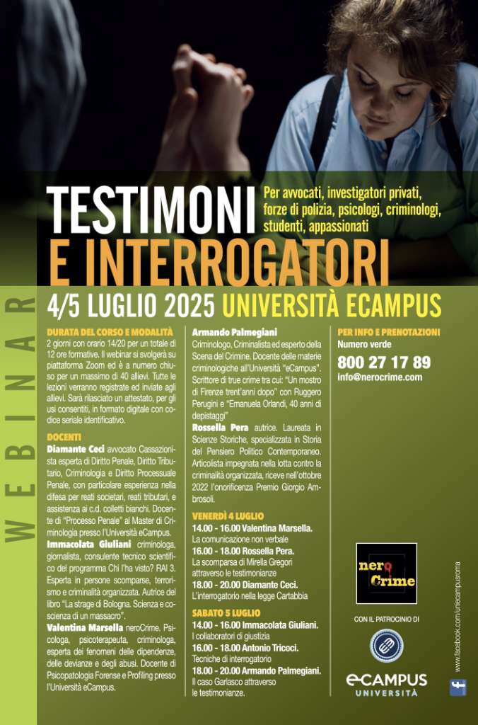 16.00 – 18.00 Antonio Tricoci. Tecniche di interrogatorio